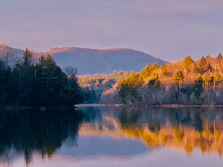 Canoe awaits adventures on a Maine river. Photo by Ramona du Houx