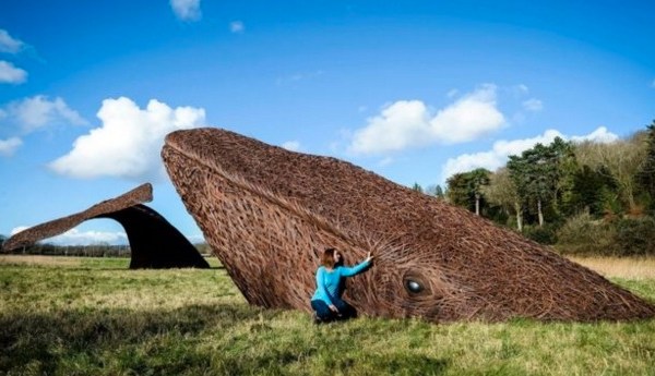 Whale willow sculpture in English nature reserve