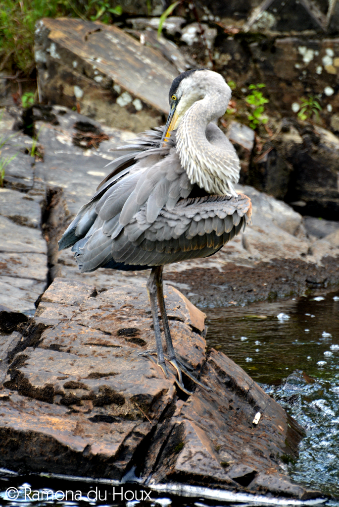 I sat on the riverbank to clear my mind, unaware of her presence. Watching the water break into a seemingly never-ending descent, I caught sight of her just beyond the waterfall’s crest, stalking pray. Lifting her stick-legs high, over and over, the great blue heron inched along. I marveled at her calm, as the river consumed each step, only slightly disrupting the water’s path.