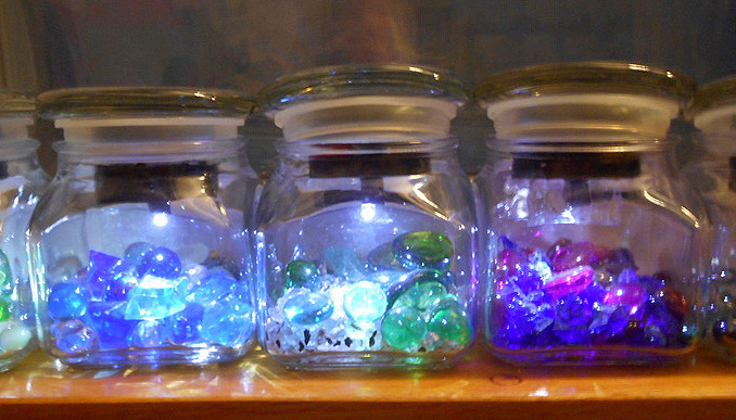 Solar Glass Jar illuminated at night